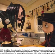 你相信在你们家某个角落里有一条通往另一样世界的通道吗?可千万别爬进去。 小女孩卡洛琳搬进新居后,破旧而又死气沉沉的环境让她感觉无聊透顶。无趣古板的父母,怪异的邻居,还有一个讨厌的小男孩和他的小黑猫,这样的生活对于满脑子都是奇思妙想的她来说,简直要了命。 不过事情并不是一直都那么糟,一个夜晚,她居然在家里的第13个门后面,发现一条秘密通道,喜欢刺激冒险的卡洛琳当然不会放弃一探究竟的机会,于是她顺着那条通道慢慢的爬了过去。 卡洛琳发现通道另一边是一个和现实完全相同但又不同的世界,一切现在都似乎在这里得到了复制,但是自己那些梦想却又在这里得到了实现。而最让卡洛琳高兴的是,这个世界里的妈妈对自己和善可亲、百依百顺。可是后来,她发现了这位“鬼妈妈”准备给自己换上纽扣眼睛,并把自己永远留在这个“奇妙”的世界。卡洛琳发现自己大祸临头了,她必须想办法逃出“鬼妈妈”的魔掌。